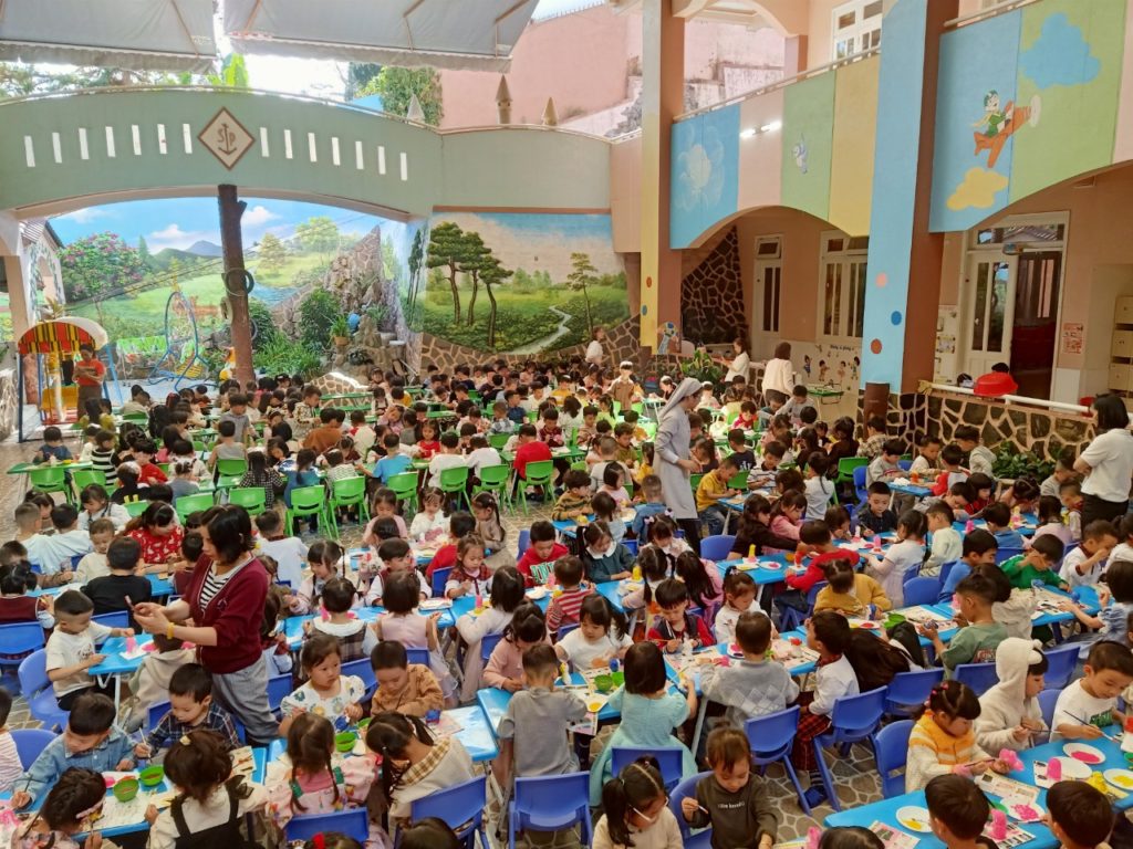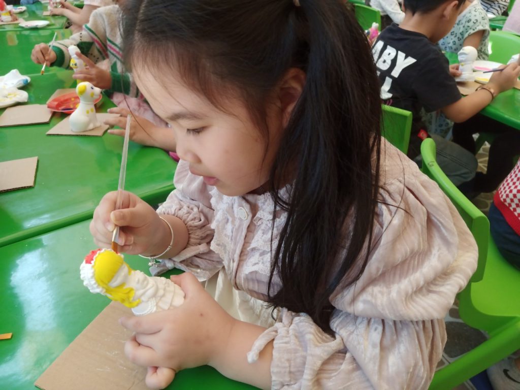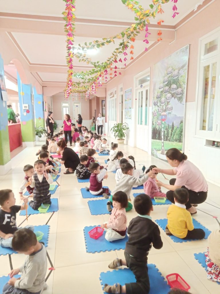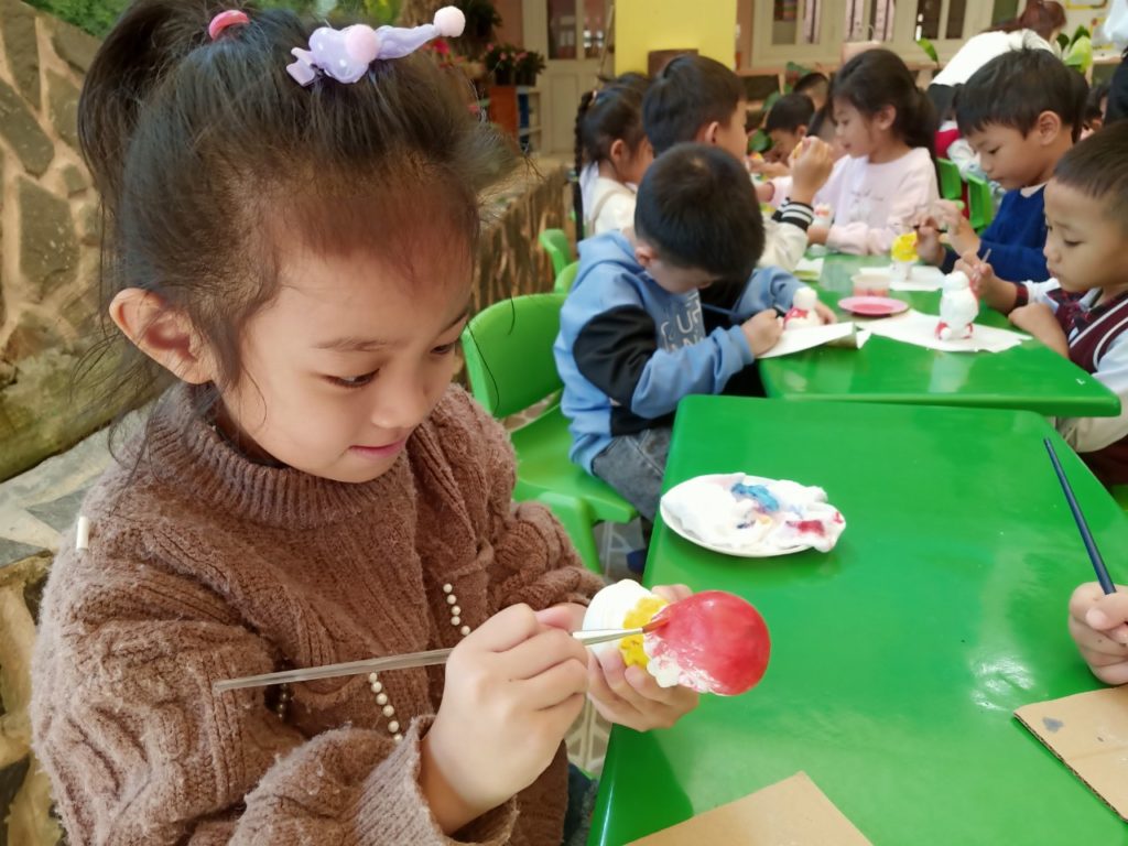 Hình ảnh các bé trường Mầm Non Thăng Long tham gia tô tượng làm quà tặng Mẹ nhân ngày 8-3